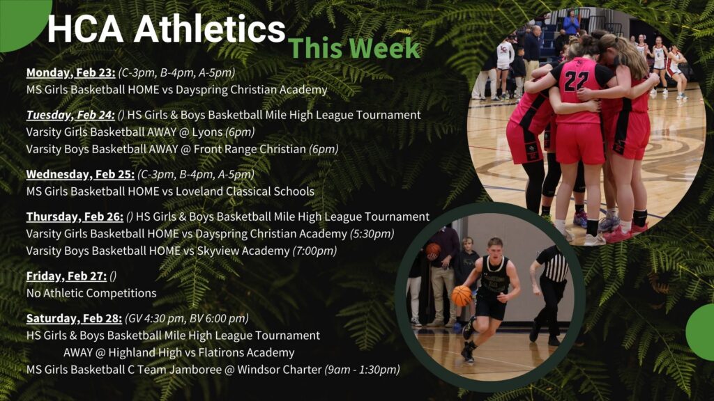 Finally, our girls and boys high school basketball teams head into a Mile High League Tournament this week. Both teams will be traveling on Tuesday, hosting on Thursday, and then playing in the finals at Highland High School on Saturday evening.